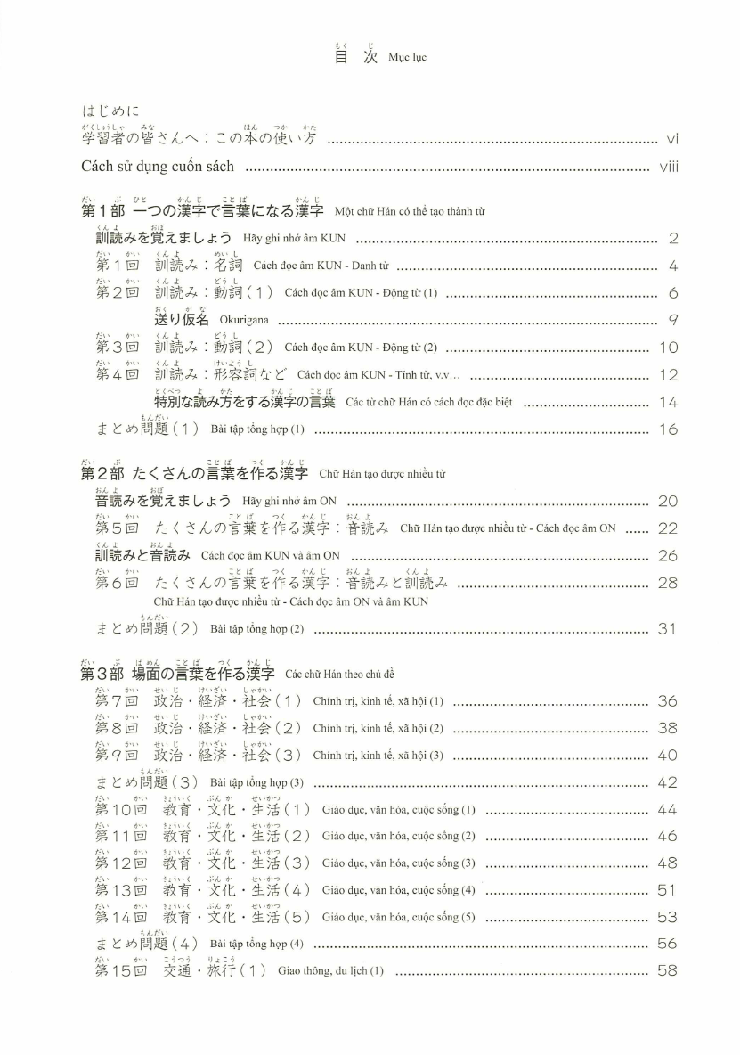 Sách phù hợp với những người đã có nền tảng tiếng Nhật cơ bản và muốn nâng cao kỹ năng đọc, viết, đồng thời chuẩn bị vững vàng cho kỳ thi JLPT N3. Phiên bản tiếng Việt giúp người học dễ dàng tiếp cận, tra cứu nghĩa và hiểu sâu hơn về cách sử dụng chữ Hán trong ngữ cảnh thực tế.