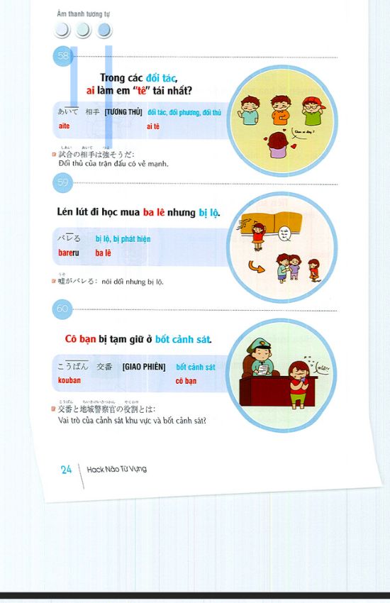 - Mỗi từ vựng được thiết kế theo phương pháp “truyện chêm + âm thanh tương tự”: