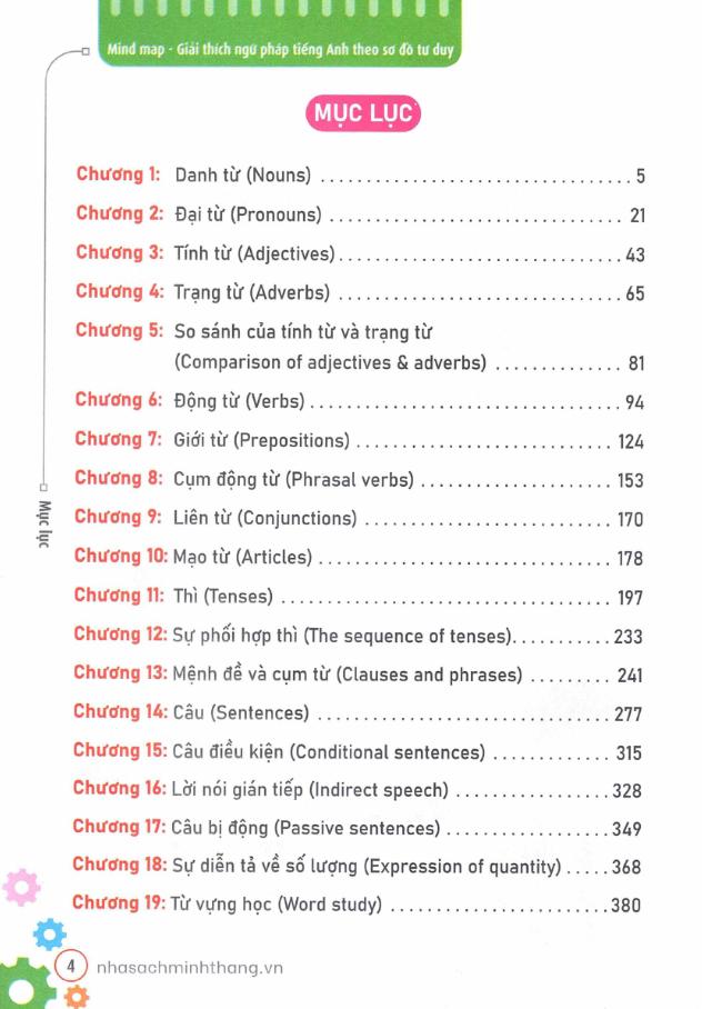 Mục lục Mind Map Giải thích ngữ pháp tiếng Anh theo sơ đồ tư duy